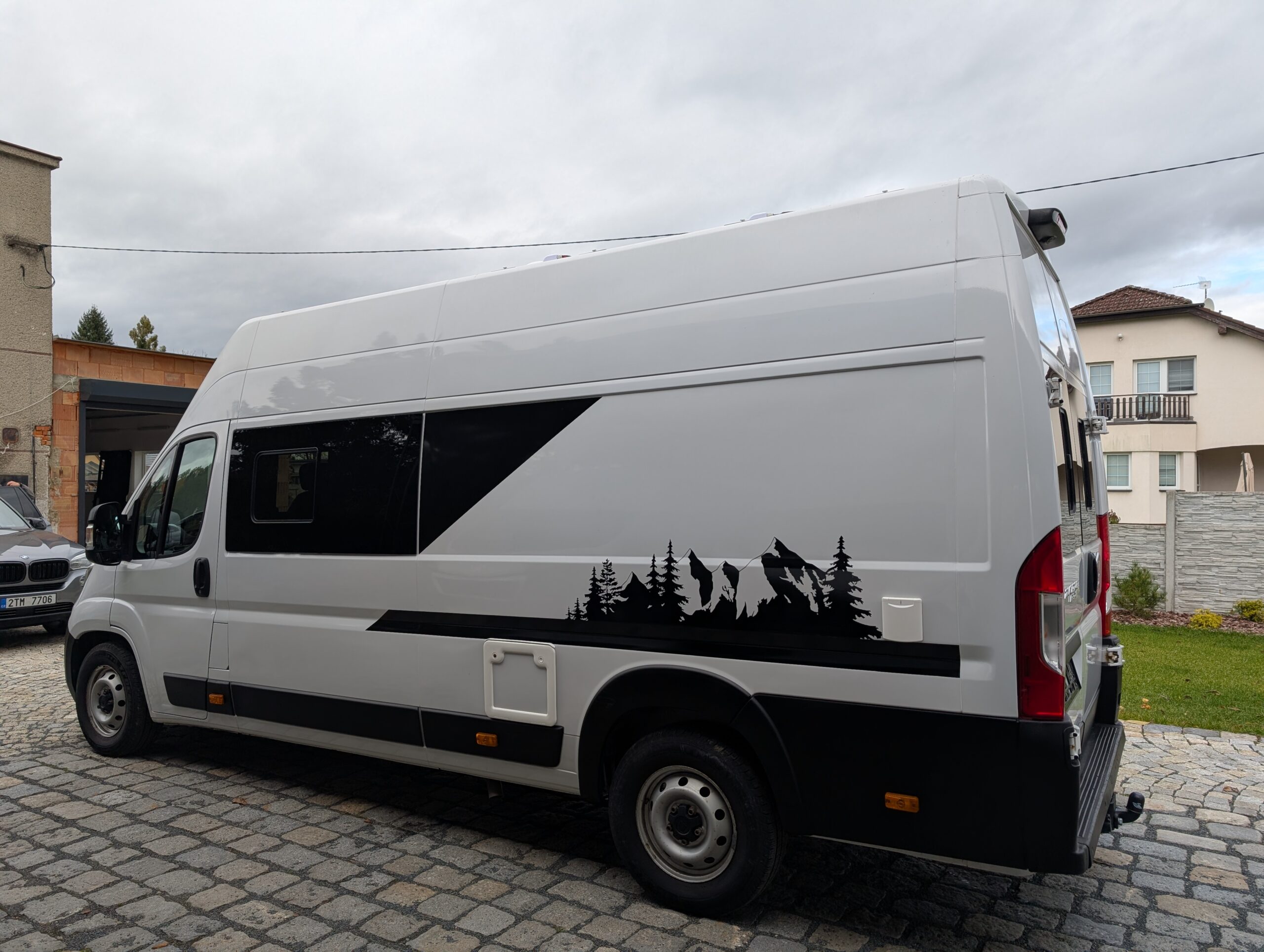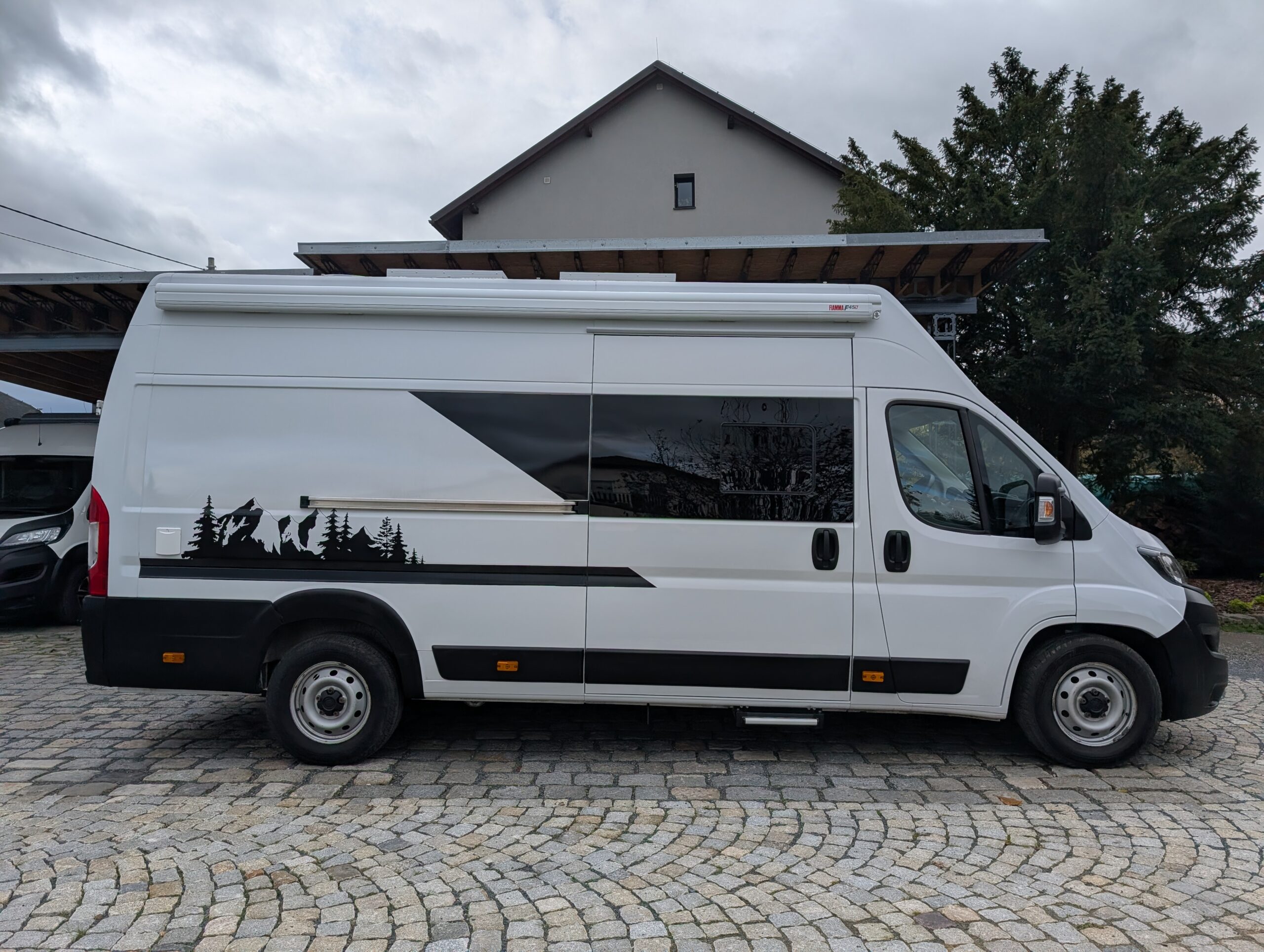 Na jízdu 4 osoby, spaní 4, Fiat Ducato r.v. 2022, agregát 2.2 JTD 103kW, najeto 173 tis.km, velikost L4H3