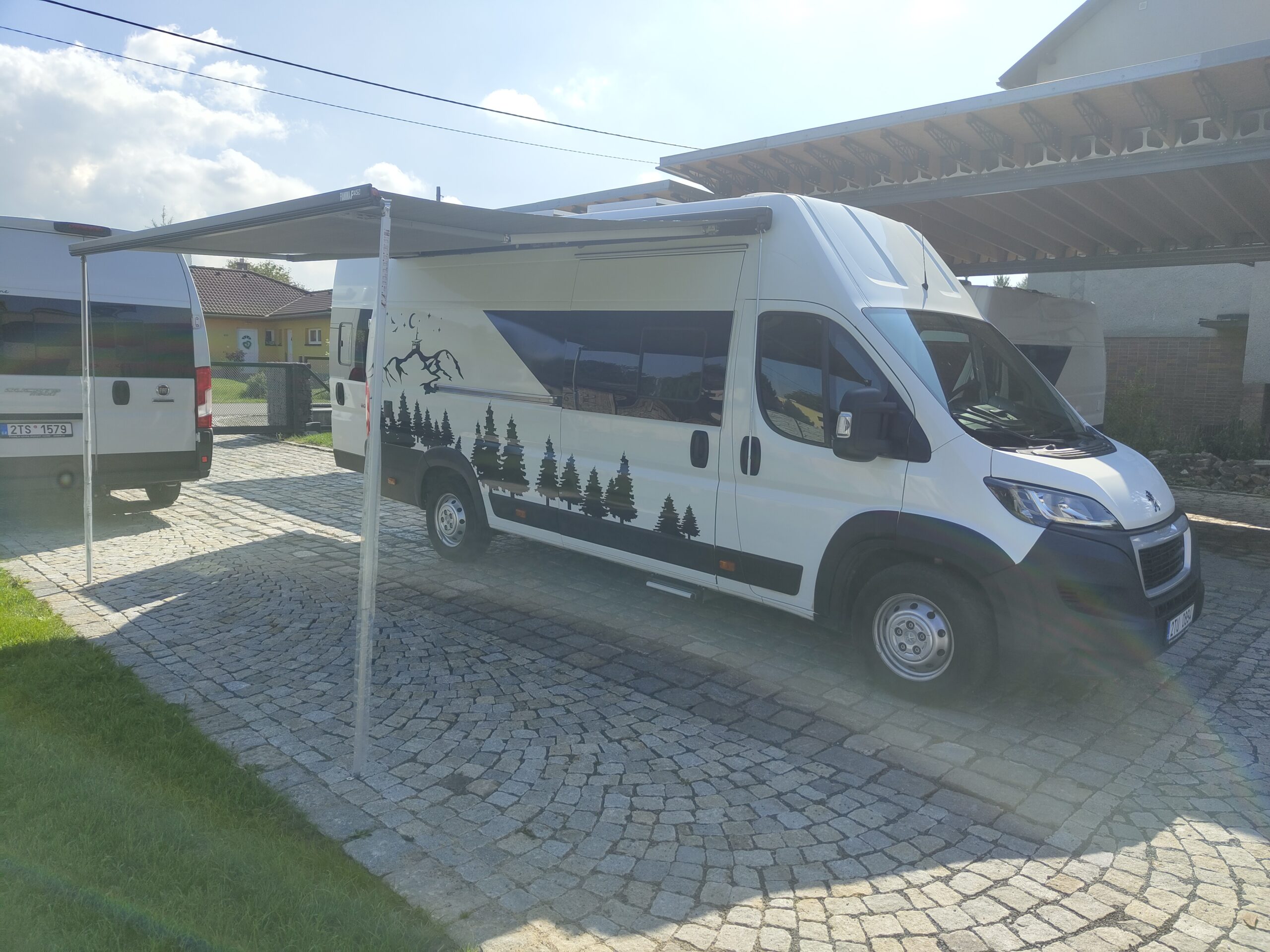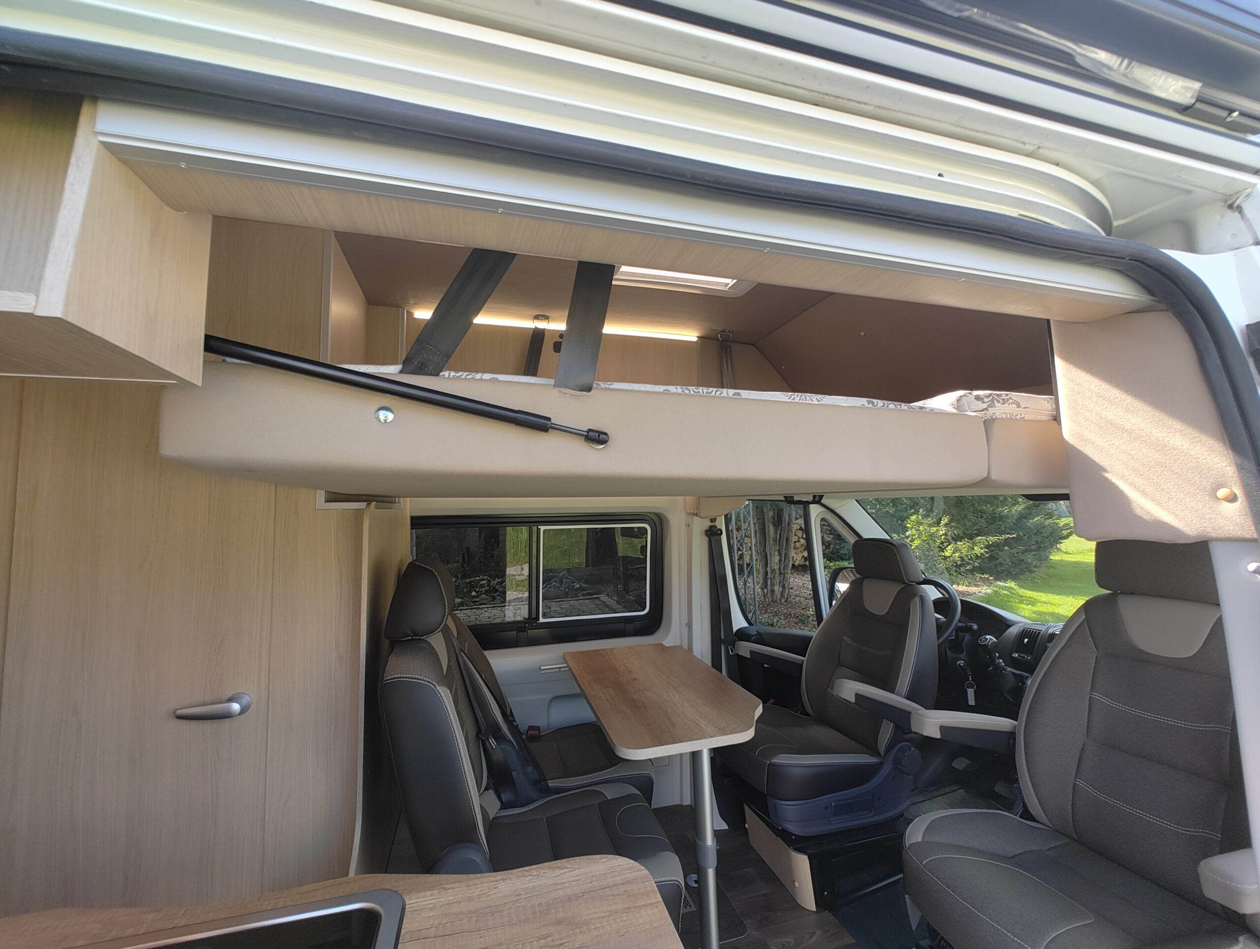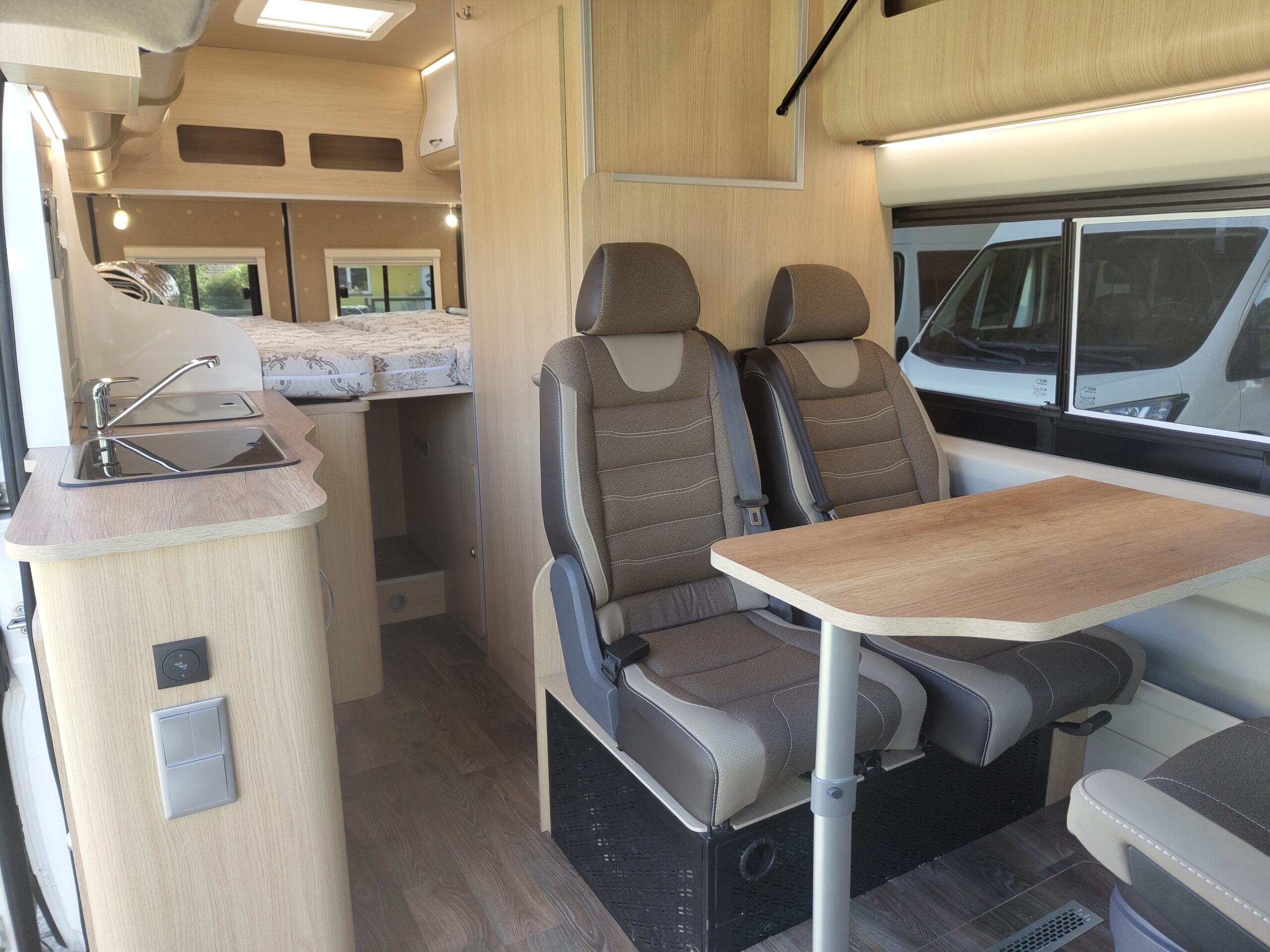 Výbava samotné vestavby: dvě samostatné posuvné a polohovatelné sedačky v druhé řadě s ISOFIXem, lednice kompresorová 80litrů, nádrže čistá voda 100 litrů, odpadní 70 litrů, chemické WC, umyvadlo, sprcha, dvouplotýnkový vařič na plyn, kuchyňský dřez, trakčí gelová baterie 100Ah, solární panely dvakrát 120w, LED osvětlení, nezávislé naftové topení 4kW s kombinovaným boilerem 9l pro ohřev teplé vody, venkovní světlo, markýza Fiamma 4m, velký úložný prostor