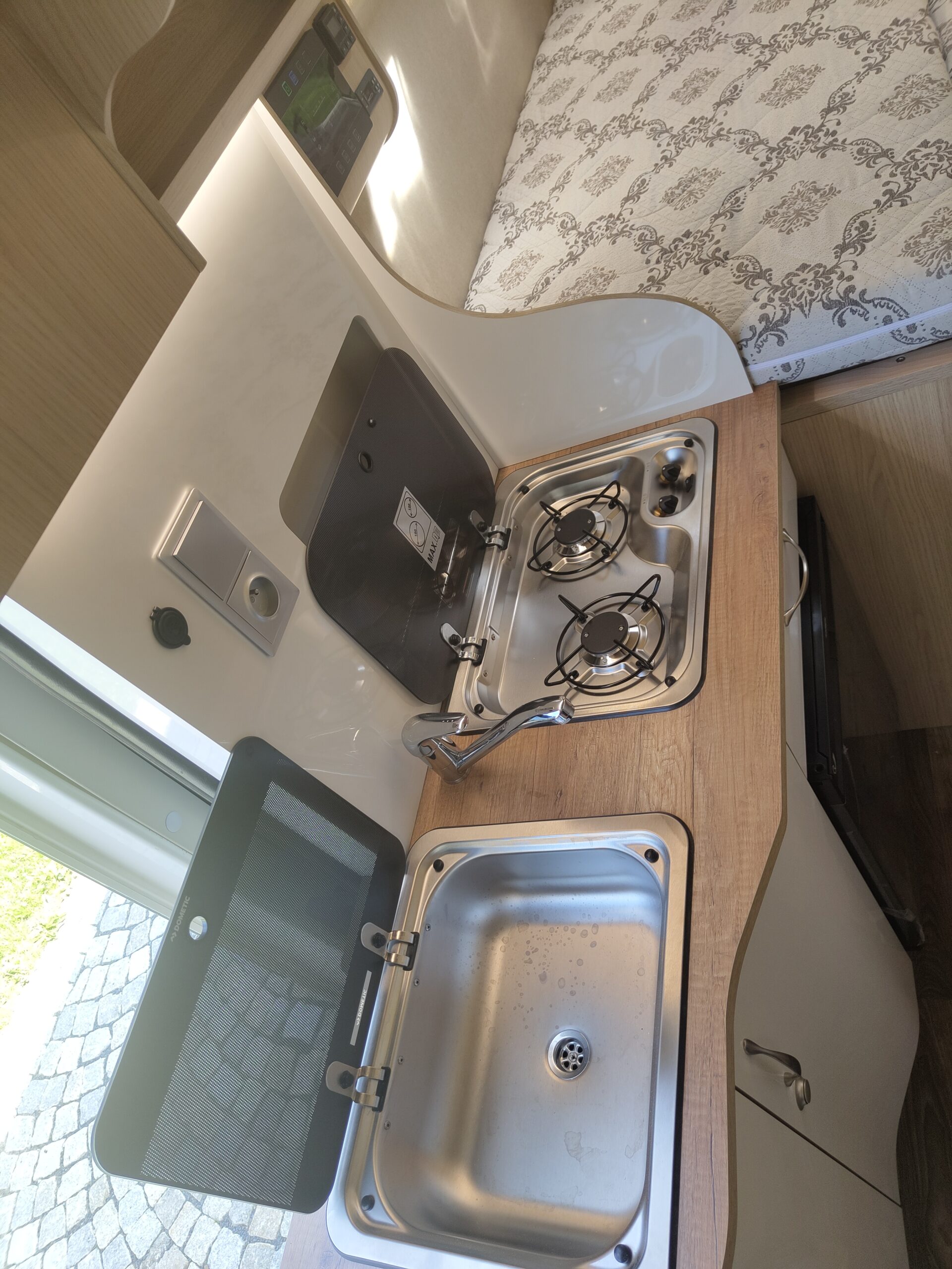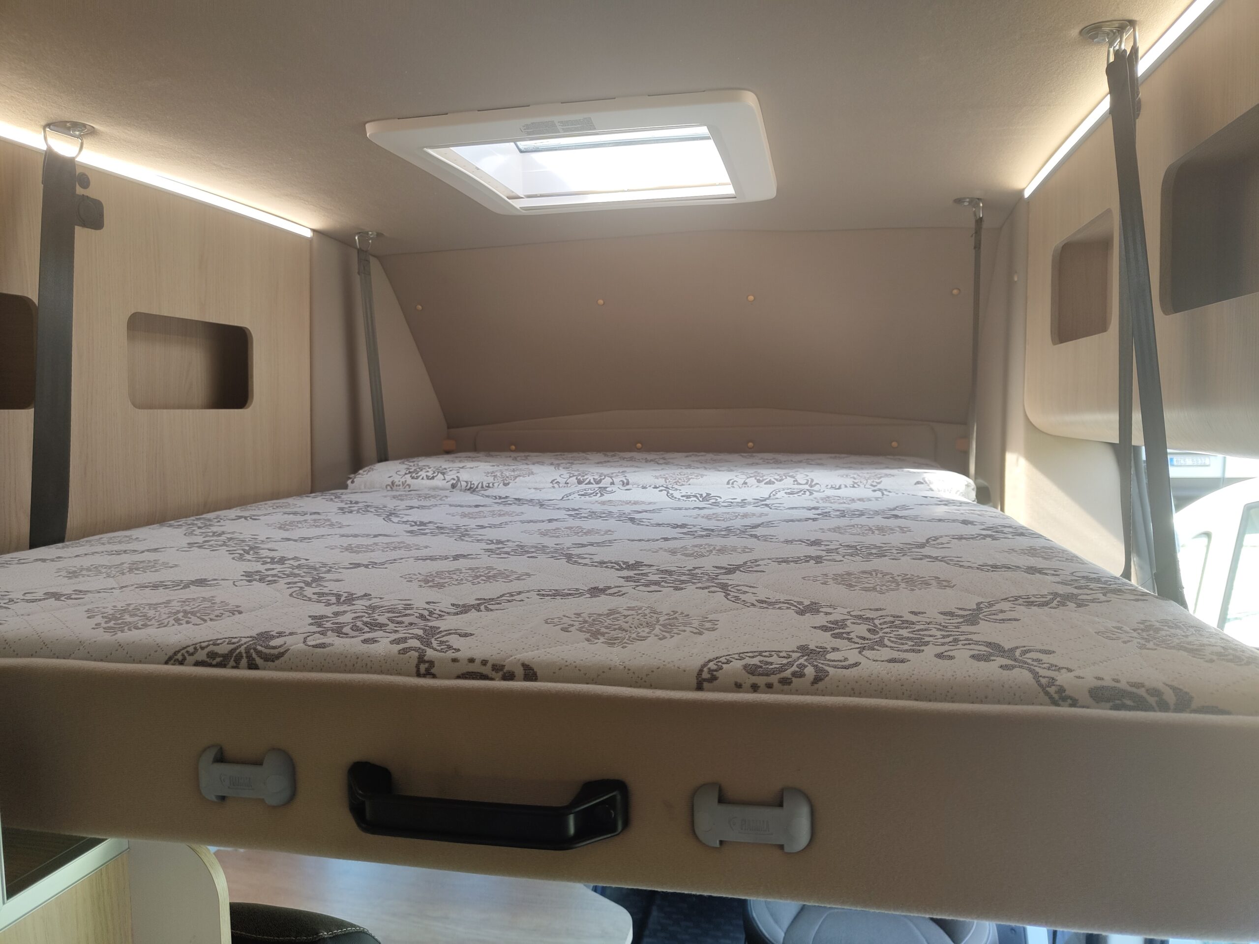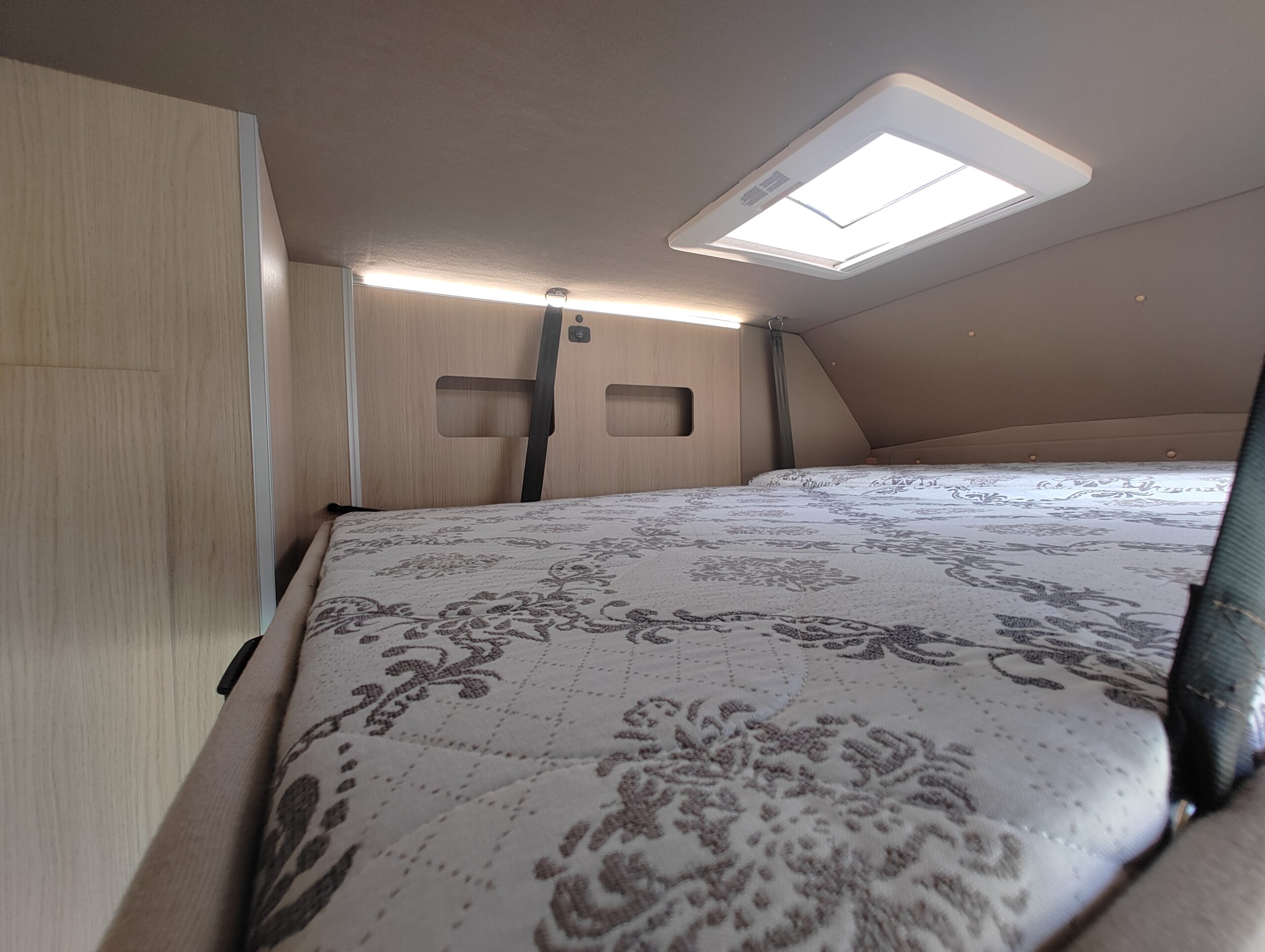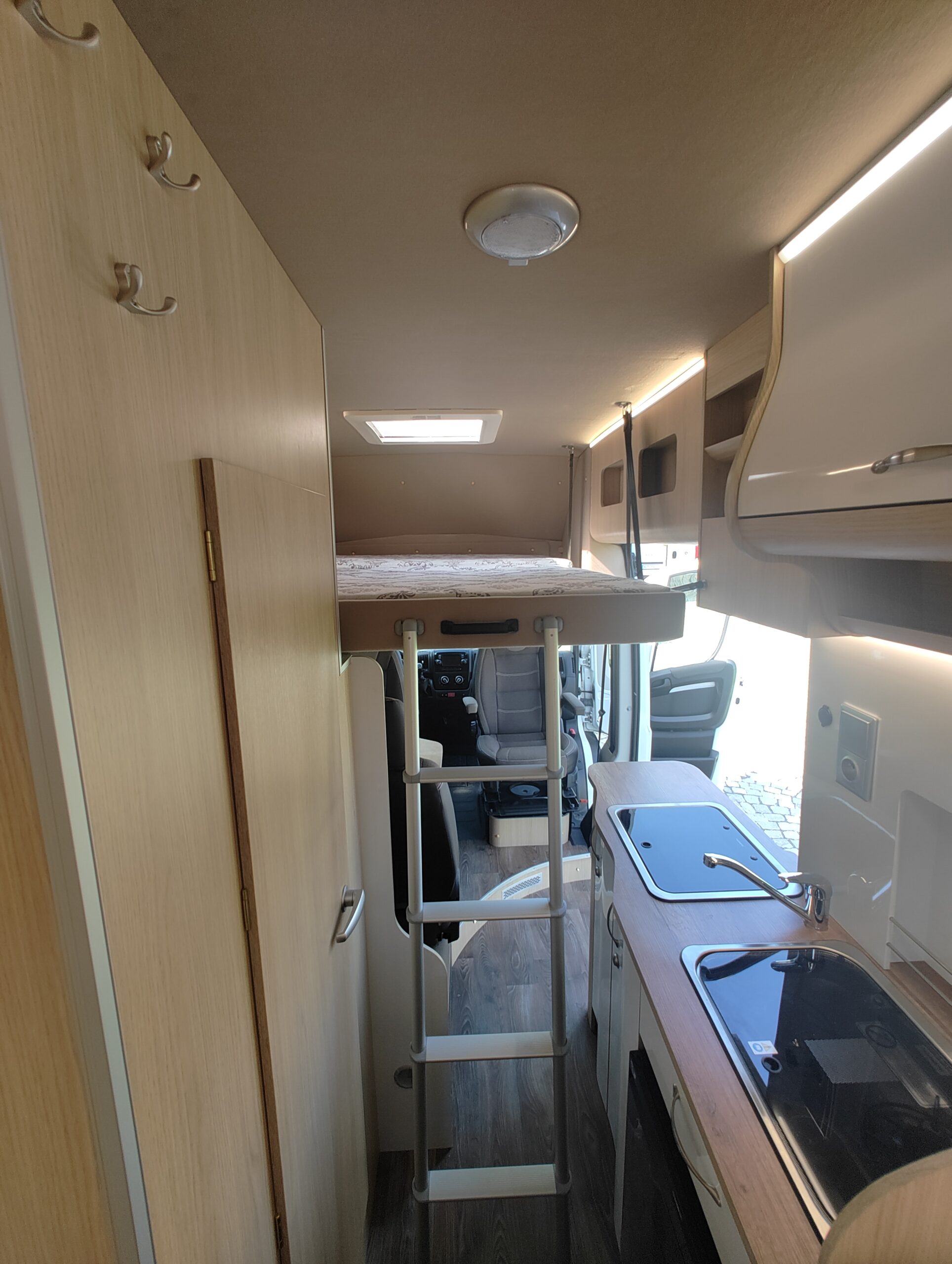 Výbava samotné vestavby: dvě samostatné posuvné a polohovatelné sedačky v druhé řadě s ISOFIXem, lednice kompresorová 80litrů, nádrže čistá voda 100 litrů, odpadní 70 litrů, chemické WC, umyvadlo, sprcha, dvouplotýnkový vařič na plyn, kuchyňský dřez, trakčí gelová baterie 100Ah, solární panely dvakrát 120w, LED osvětlení, nezávislé naftové topení 4kW s kombinovaným boilerem 9l pro ohřev teplé vody, venkovní světlo, markýza Fiamma 4m, velký úložný prostor