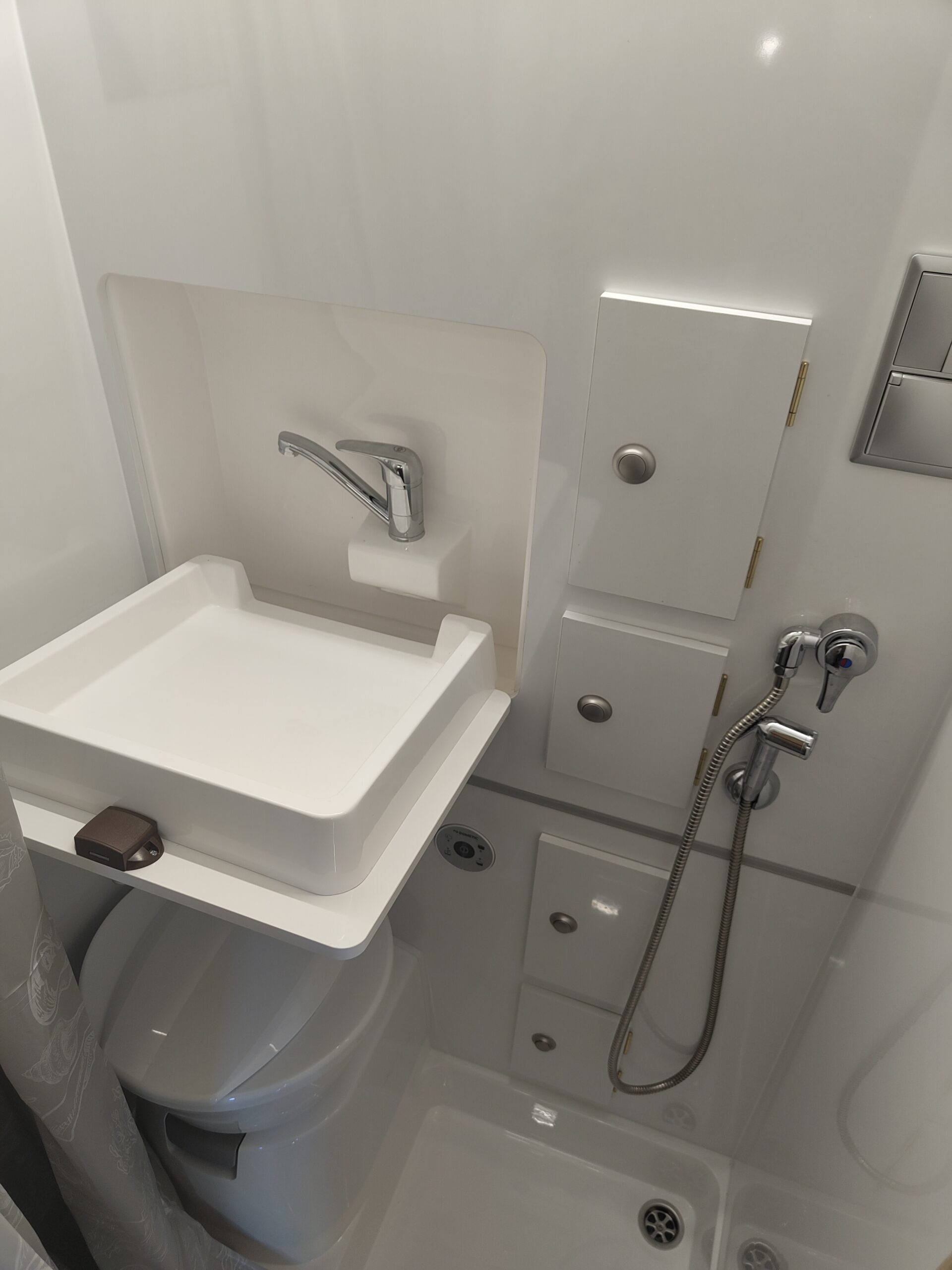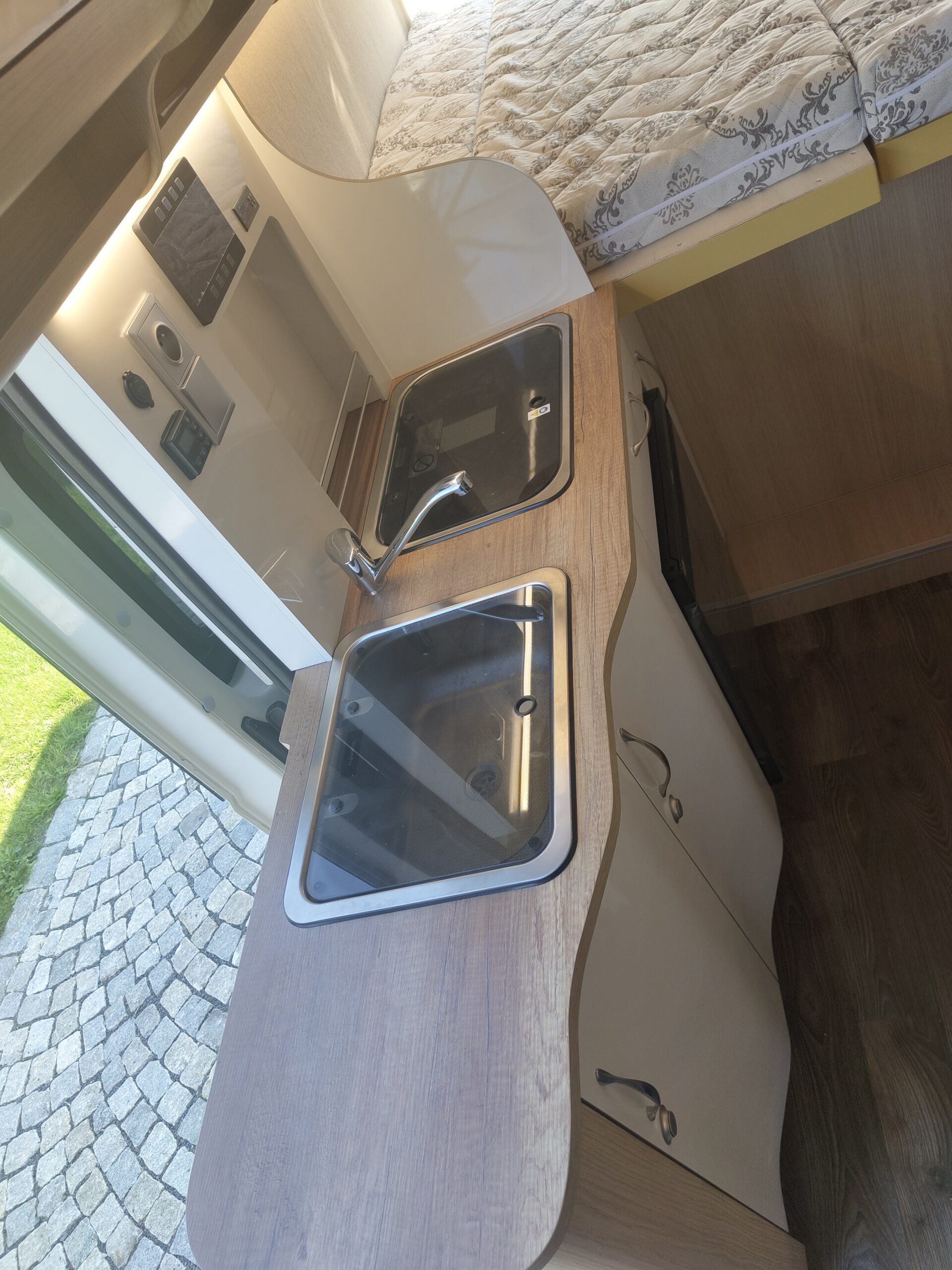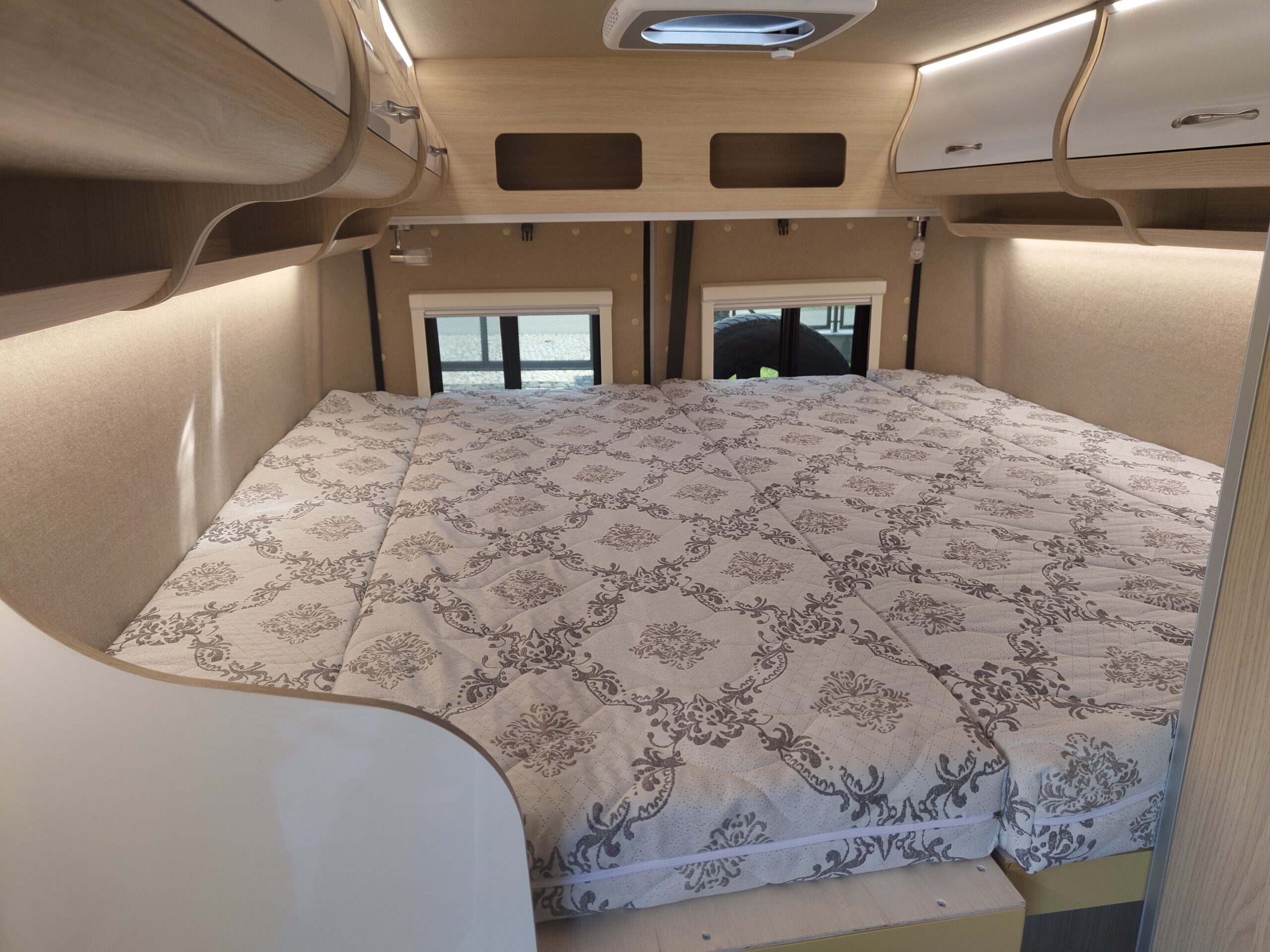 Výbava samotné vestavby: dvě samostatné posuvné a polohovatelné sedačky v druhé řadě s ISOFIXem, lednice kompresorová 80litrů, nádrže čistá voda 100 litrů, odpadní 70 litrů, chemické WC, umyvadlo, sprcha, dvouplotýnkový vařič na plyn, kuchyňský dřez, trakčí gelová baterie 100Ah, solární panely dvakrát 120w, LED osvětlení, nezávislé naftové topení 4kW s kombinovaným boilerem 9l pro ohřev teplé vody, venkovní světlo, velký úložný prostor, možnost dodání markýzy
